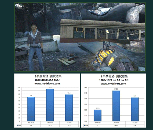 在特效不多的场合这款游戏的最大帧有些夸张,可以达到四百多帧,当然平均帧并没有这么夸张了。HD 4670在物理游戏中表现依然低迷,平均帧都都在10帧以下。9600GT和......详细>>