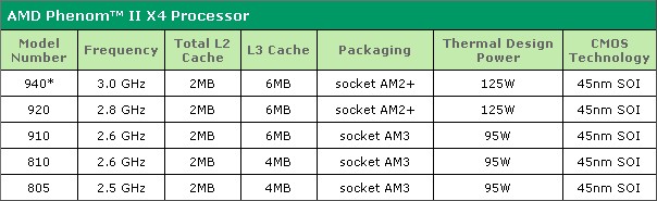 | Phenom II X4 940/920(AM2+接口)详细规格: |