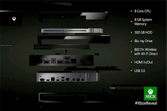 从微软公布的信息来看,Xbox One搭载了由AMD提供的8核定制版高性能APU,拥有8GB内存和500GB硬盘,配备吸入式蓝光光驱,支持Wi-Fi和HDMI输入/输出,设计有USB 3.0接口,具有多任务处理能力。