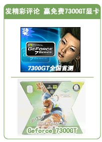 为了答谢一直以来对我们支持和关注的读者朋友们,我们在此次发布测试文章的同时将举办有奖评论活动,只要您在看完文章后发表您的精彩见解,就有可能获得我们的合作厂商送出的Geforce 7300GT显卡一块。