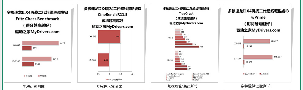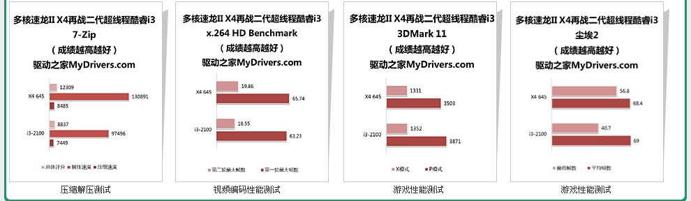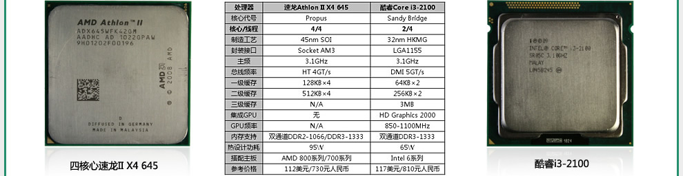 高端平台上,物理六核心相比逻辑十二核心的较量中几乎全胜,充分证明了物理多核心的高效率,那么主流方面情况又会如何呢?采用Sandy Bridge新架构、改用LGA1155封装接口的新一代酷睿i3-2100系列能否取代LGA1156接口的酷睿i3-500系列,抗衡经典的速龙II X4 600系列呢?下边再请出主流消费市场上点名率颇高的两位猛将PK一下,它们分别是经典的主流级四核心速龙II X4 645、配备新一代超线程的双核心酷睿i3-2100。【更多……】