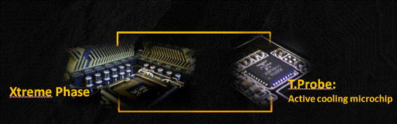 该主板新加入的T.Probe技术可以说是供电系统中一颗闪耀的明星,它可以被看成一个专业的管理人员,它不但可以合理的分配供电输出量,还可以完美的控制每相供电所承受的温度,这样做的好处是,原本12+2相供电系统可以发挥出更高相数的供电效率,而且可以延长组件的寿命。