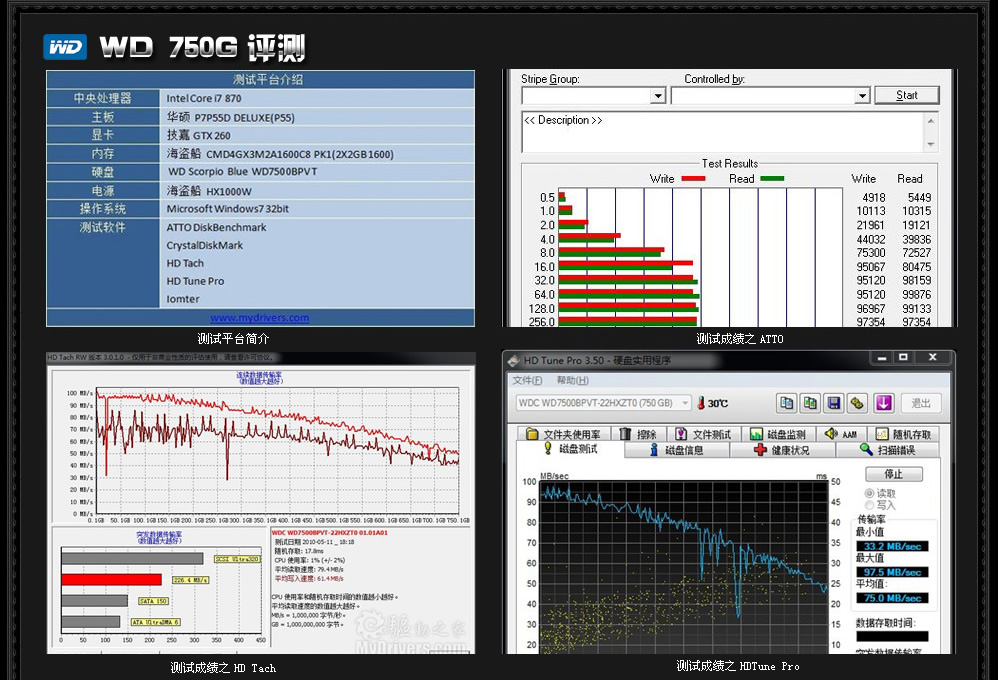 导言:为了更好的展示出它的性能,我们搭建了一套中高端平台,包括来自华硕的P7P55D DELUXE和Intel i7 870处理器, 软件方面,采用32位WIN7系统作为测试平台的操作系统,另外还使用包括PCMark Vantage在内的多款权威磁盘测试软件对这款硬盘进行基准性能测试。软硬件安装完成以后,正确的测试方法是:开机进入到桌面上以后,待系统准备就绪后,才开始运行测试(关闭UAC、屏幕保护程序、系统还原、自动更新等对测试得分有干扰的系统任务)。所有测试项目都运行三遍,在测试成绩稳定、可靠的情况下,我们取其中间值为准。