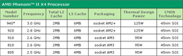 | Phenom II X4 940/920(AM2+接口)详细规格: |